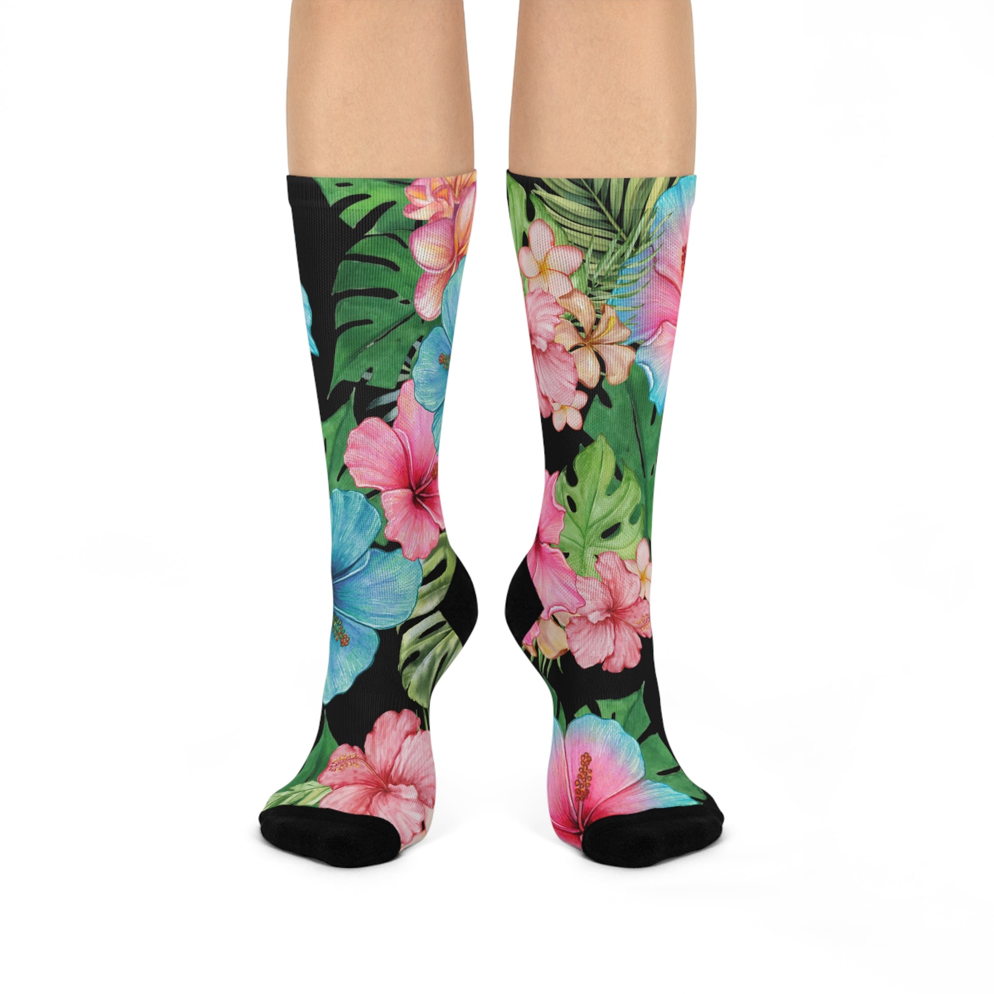 These cushioned DTG crew socks are a one-size style designed with both function and appearance in mind. With the fully cushioned heel-to-toe, these socks provide superior comfort, while the DTG print process allows for ultra-crisp, crease-free printing. Composed of 73% polyester, 18% nylon, 6% spandex, and 3% cotton, these socks are an elevated alternative to the typical sublimation sock and provide a clean, comfortable base for your all-over print designs.